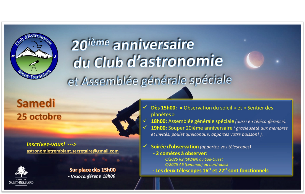 Étant membre, vous l'êtes également de la Fédération des astronomes amateurs du Québec (FAAQ).
