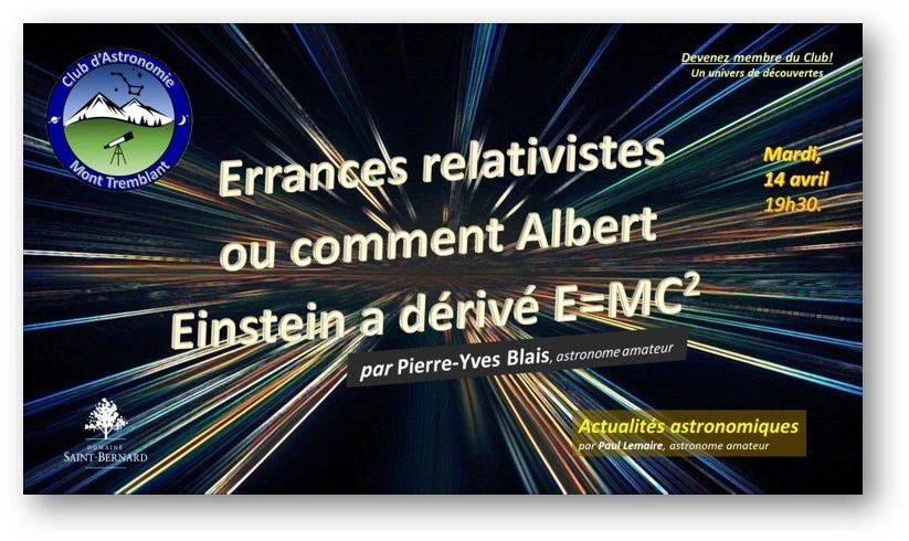 Après les conférences du mardi, selon la météo, venez observer le ciel avec Mario Bernard, Gilles Patenaude, et les membres du Club d'astronomie Mont-Tremblant
